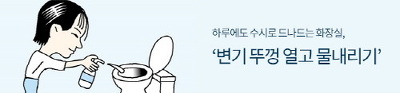 대변에는 50만~60만 마리의 살아있는 세균이 들어 있는데 변기 뚜껑을 연 채 물을 내릴 경우 세균이 물과 함께 공중으로 흩어져 화장실 안에 퍼진다.