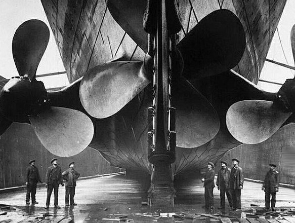 건조 중인 타이타닉 호의 프로펠러. 1912년.