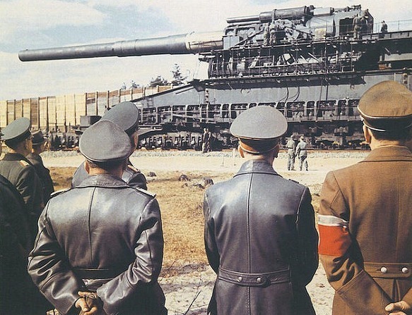 히틀러가 초대형 railway gun 인 ‘Schwerer Gustav’의 시험 발사를 보고 있다.