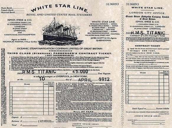타이타닉 호의 승선권. 1912년 4월 10일.