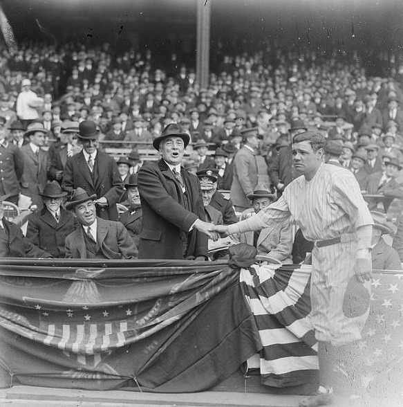 양키스 스타디움에서 베이브 루스와 악수를 하고 있는