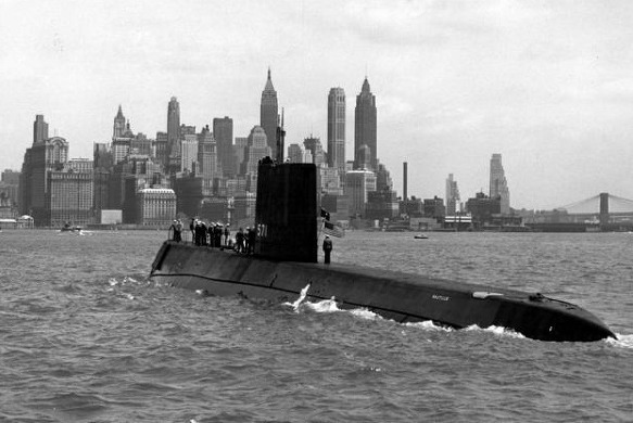 뉴욕 항을 방문한 세계 최초 핵잠수함 USS Nautilus. 1956년.