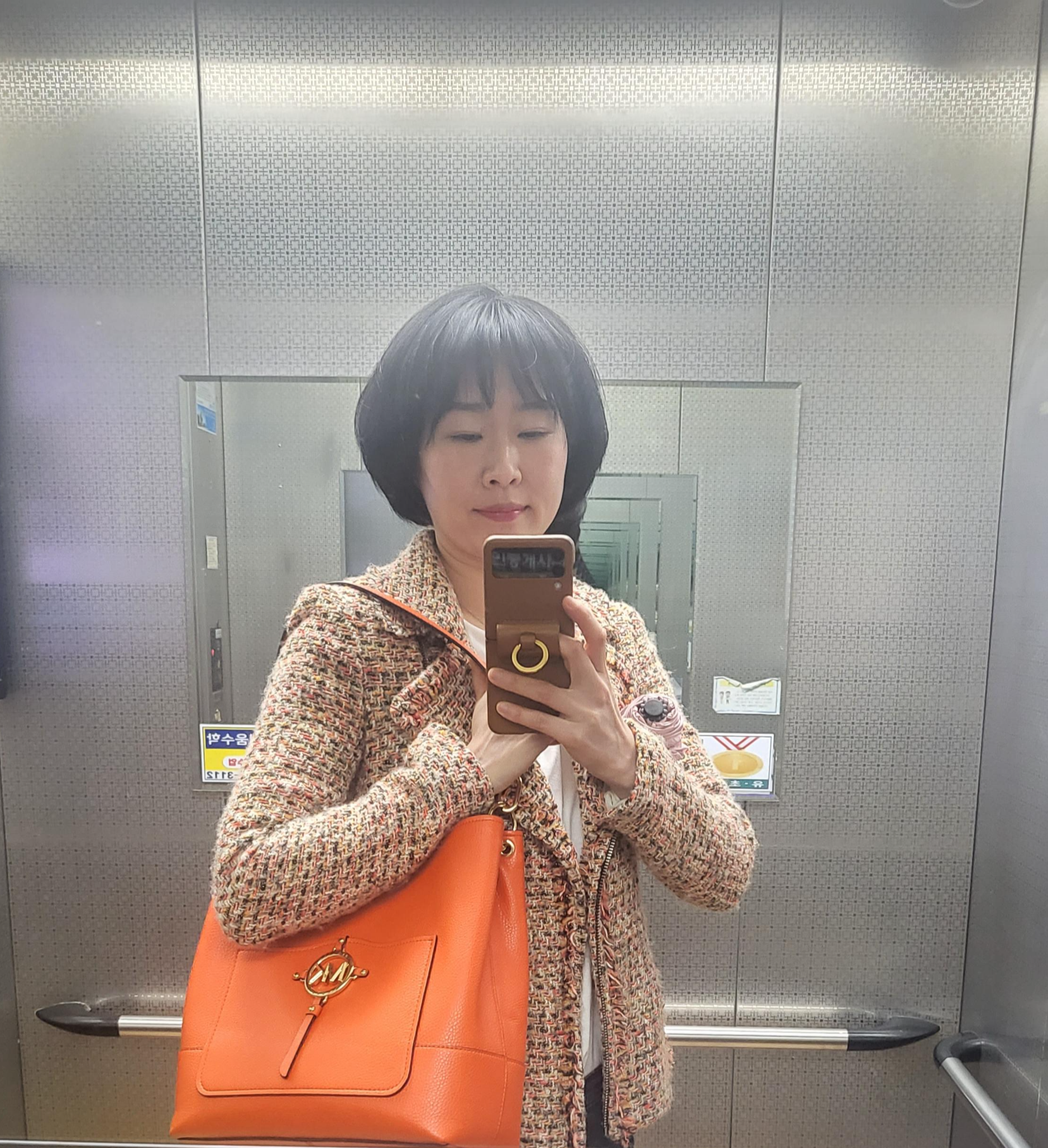 나들이 준비중 승강기 안에서