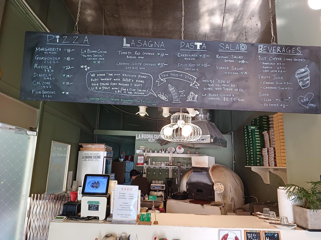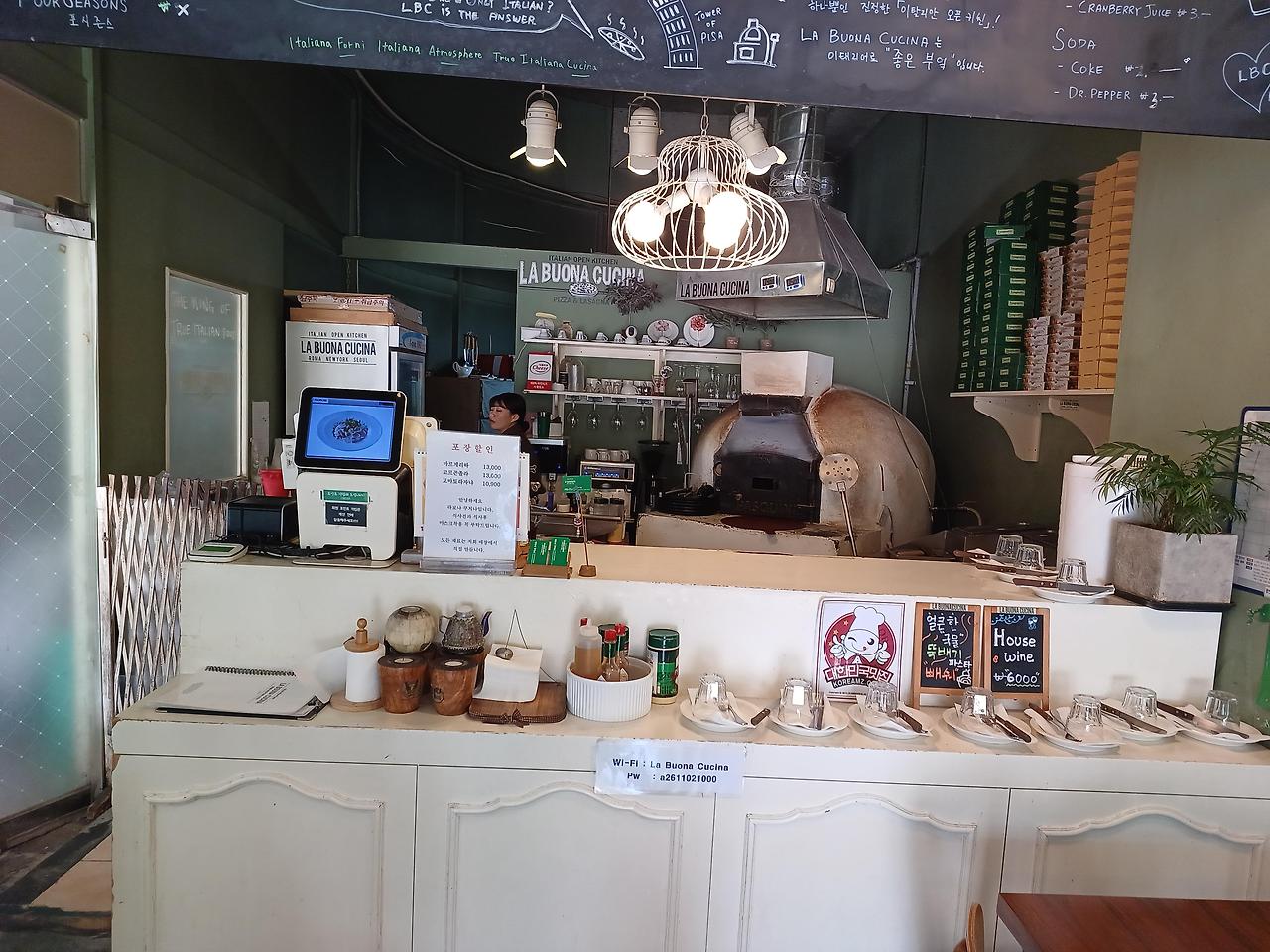 여성회관 공용주차장 이용가능* 주메뉴: 피자/ 플렛브레드/ 파스타/라자냐/셀러드/와인 등