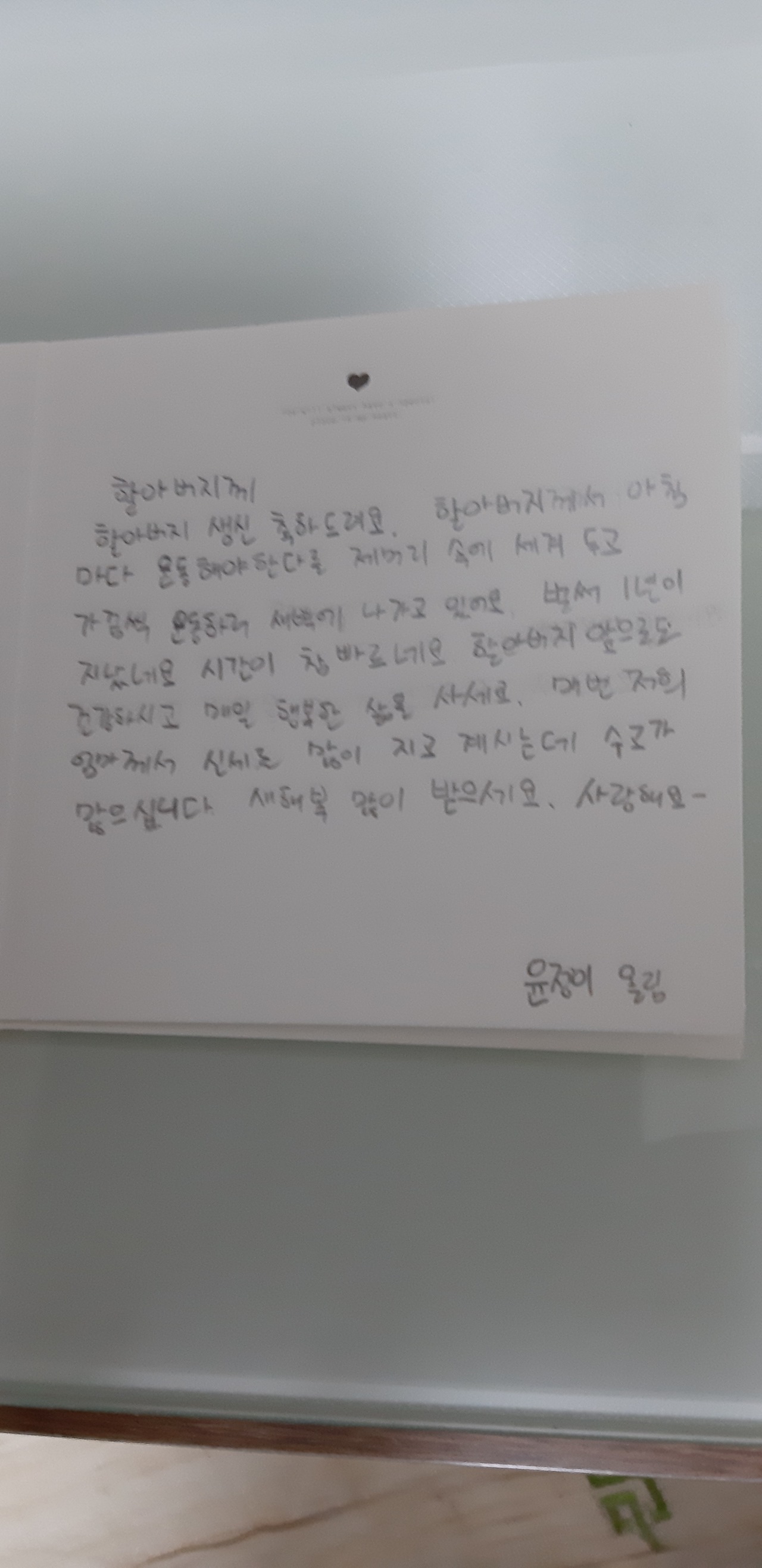 손녀딸 윤정이가 할아버지 생일날 보내준 편지