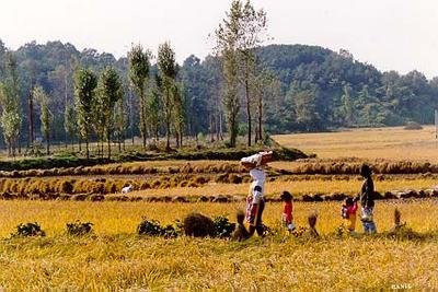 아기들 데리고 새참 가지고 밭으로 가는중입니다.