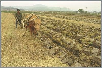 이랴 ~ 밭고랑을 내고 있습니다.