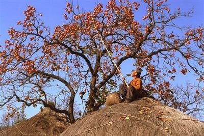 초가지붕위에서 감따는 중입니다.